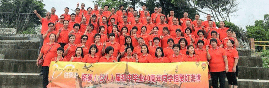 東莞懷德(七八)屆初中40周年同學聚會,大家歡聚一堂。穿著由哈馬校服設計的Polo衫相聚在紅海灣,緬懷昔日學生時代的往事回首。【查看詳情+】